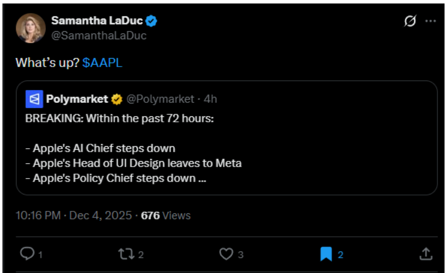 Zac also noted the news that people in leadership at AAPL had been leaving the company over the last several days: