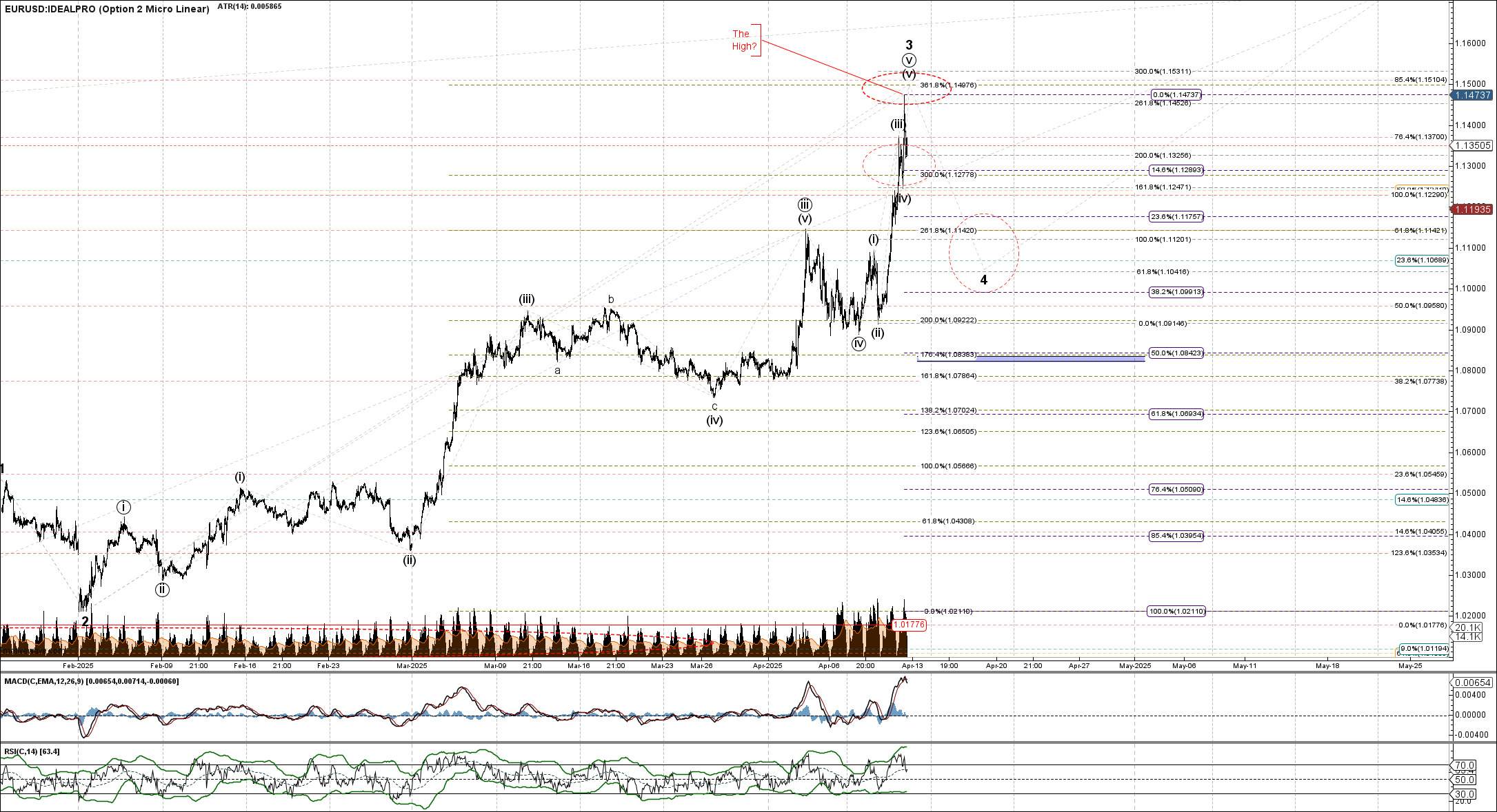 Possible target for wave 4 is outlined on the Micro chart. As long as the 104.50 region is not decisively breached, the current count remains a high-probability scenario.