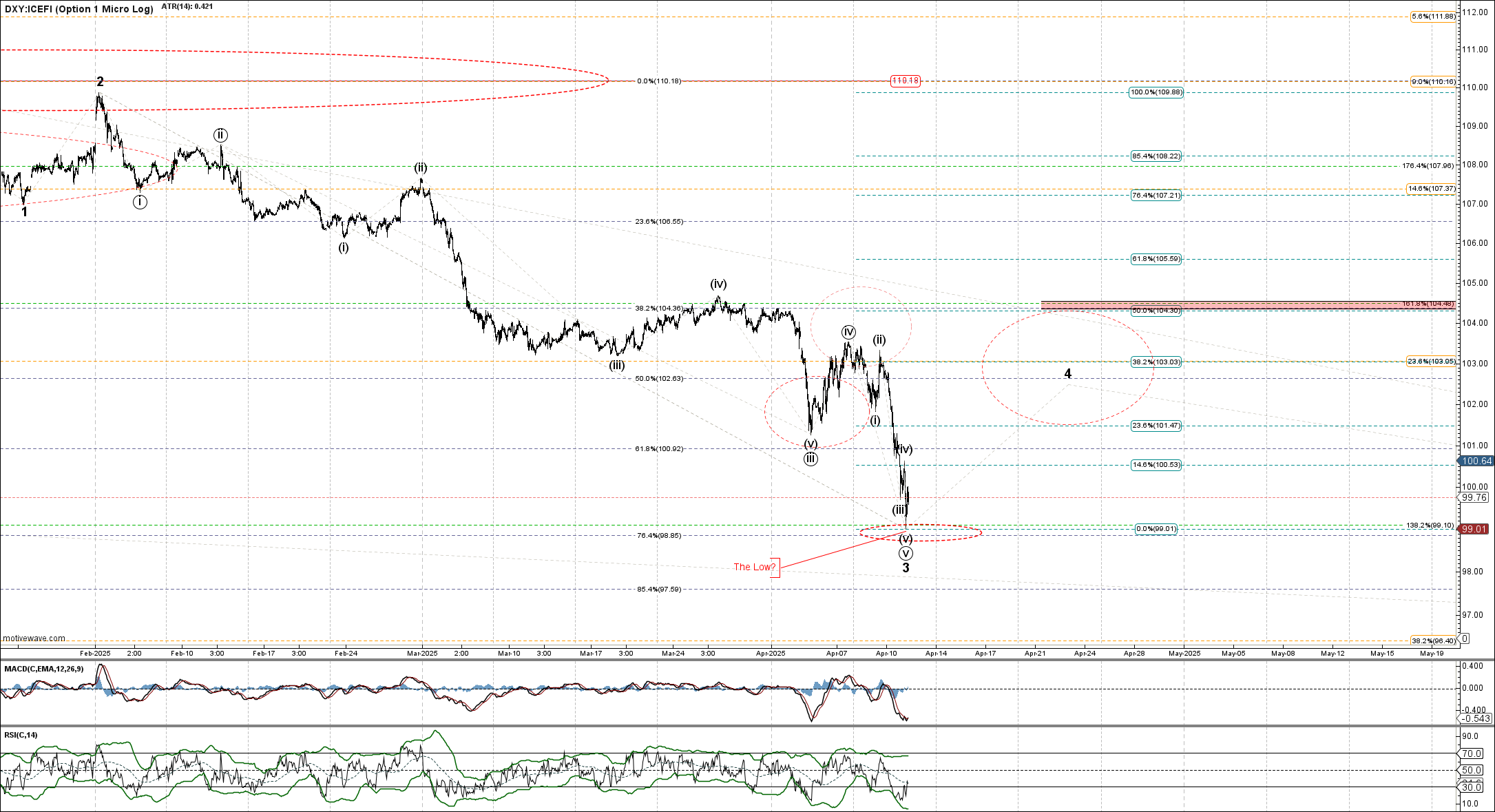 DXY: The index has reached the ideal target for wave 3, and I consider this part of the decline complete. While a minor extension to the 98.8 region is still possible, overall I anticipate a bounce soon.