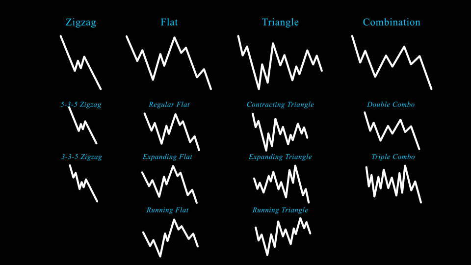 Overall, corrective waves can be grouped into four separate categories: zigzags, flats, triangles, and combinations. Within each category there are also distinct variations of each pattern that can be considered subsets of the larger category. The amount of variety displayed by corrective waves means that patience and flexibility must be exercised when analyzing them in real-time.