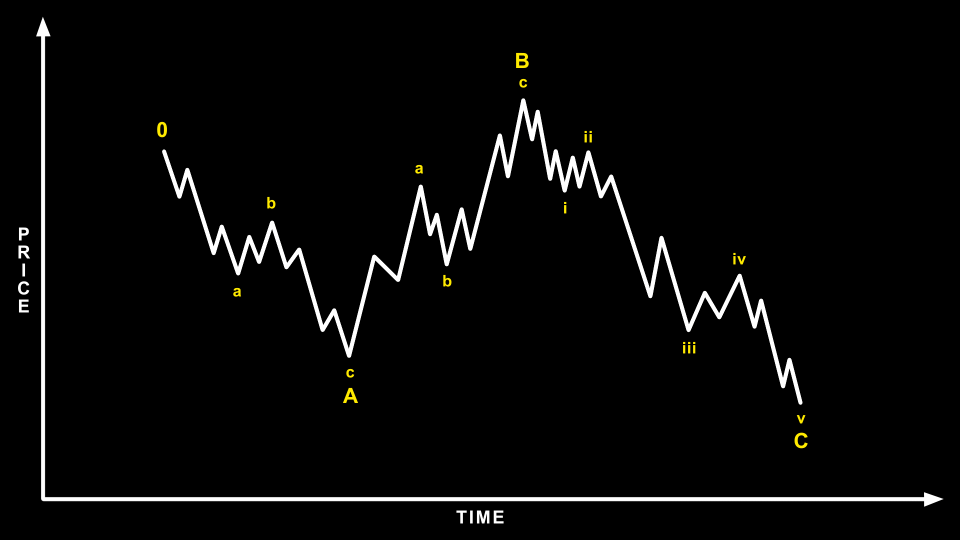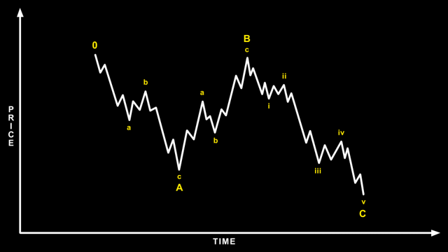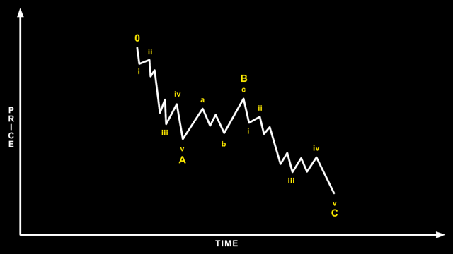 As their name suggests, motive waves progress price in the direction of the trend at one higher degree whereas corrective waves move counter to the direction of the trend at one higher degree. This applies to trends in both directions. Motive waves will always subdivide into 5 smaller waves and are labeled using numbers. Corrective waves will usually subdivide into 3 smaller waves, but can occasionally subdivide into more if a triangle or a combination. Corrective waves are labeled using letters.