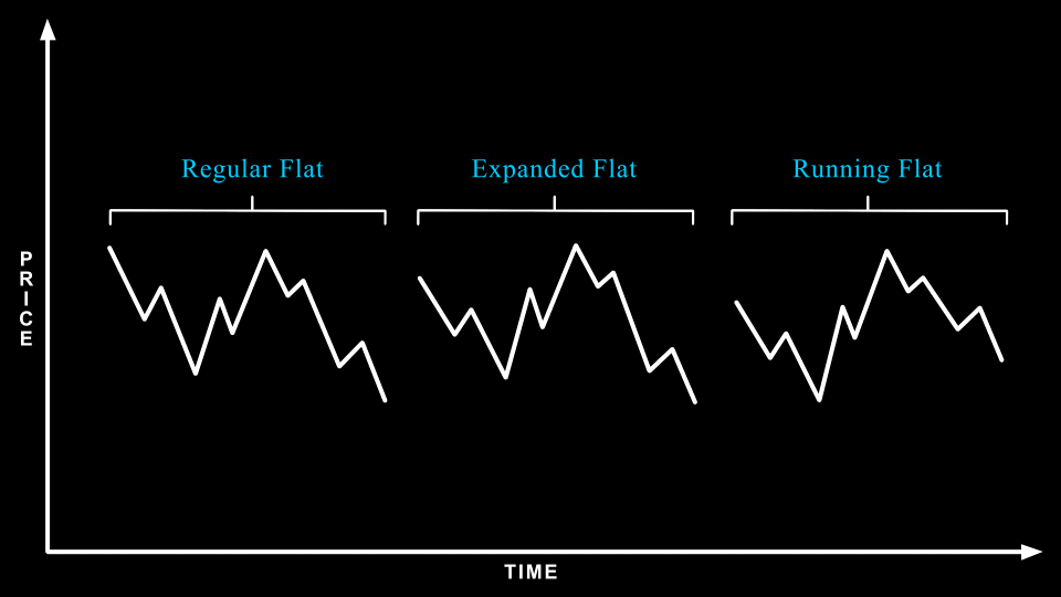 Regular flats are the standard variety, identified by the B-wave retracing most if not all of the preceding A-wave. Wave C will then typically terminate just beyond the end of the A-wave, often the same length as wave A in price. This behavior results in the sideways, protracted shape that is characteristic of all flats.