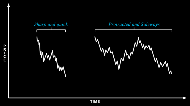 Corrective waves typically unfold in one of two ways: a sharp and quick retracement of the preceding actionary wave, or a protracted and sideways consolidation that in comparison takes much longer in duration to complete. These two distinct characters of corrective waves can be observed when alternation occurs between waves 2 and 4 of a motive structure.