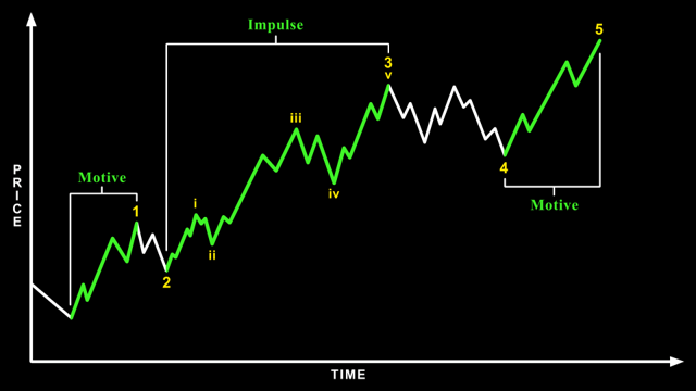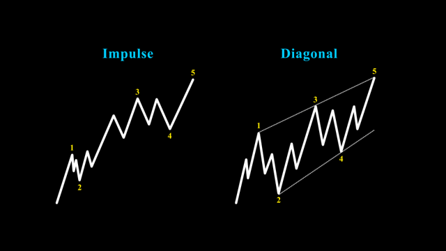 There are two variations of a motive wave: impulse and diagonal. Both serve the purpose of progressing price in the direction of the larger trend, but they have distinctly different characteristics.