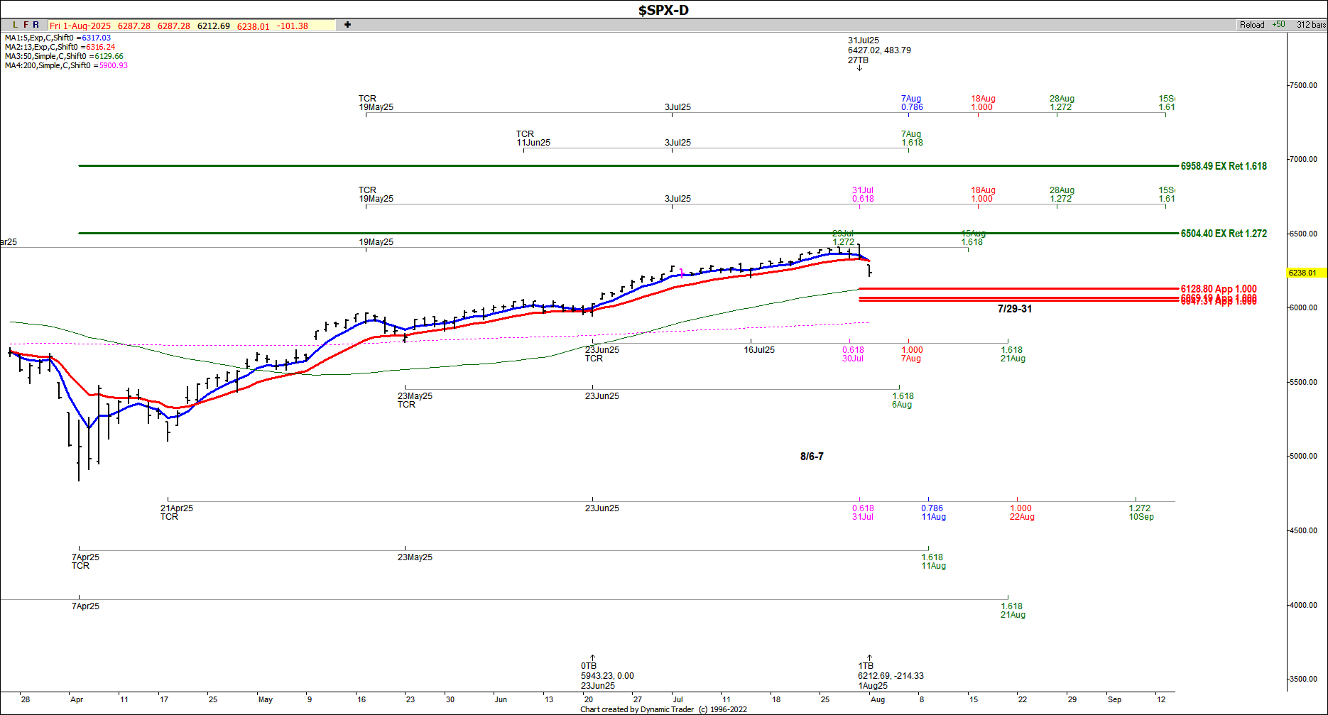 Last week we had too many cycles to look at and could not get any clarity on when the SPX might reverse its climb. We did, however, show a few clear cycles this past week that came in between 7/29-31. These dates plus or minus a day gives us a window where a possible reversal of the market becomes more likely.
