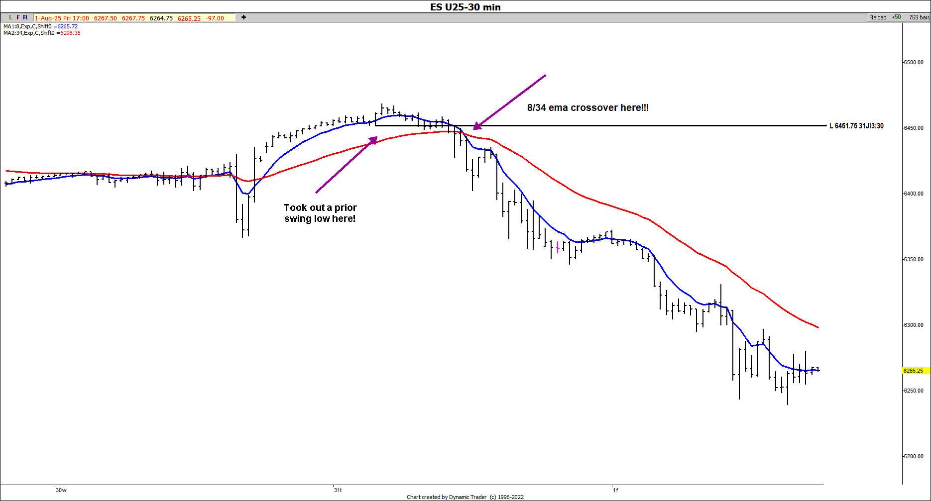 I don't plan on getting into the market on the long side, however, unless we are continuing down into the next grouping of cycles and we then see a clear reversal signal. Typically, I like to see the 8/34 ema crossover to the upside on a 30-min chart. If you look at the current 30-minute chart you will see where the sell signals were given on the downside crossover against the cycles for a high!! I'm going to stalk this one early next week.