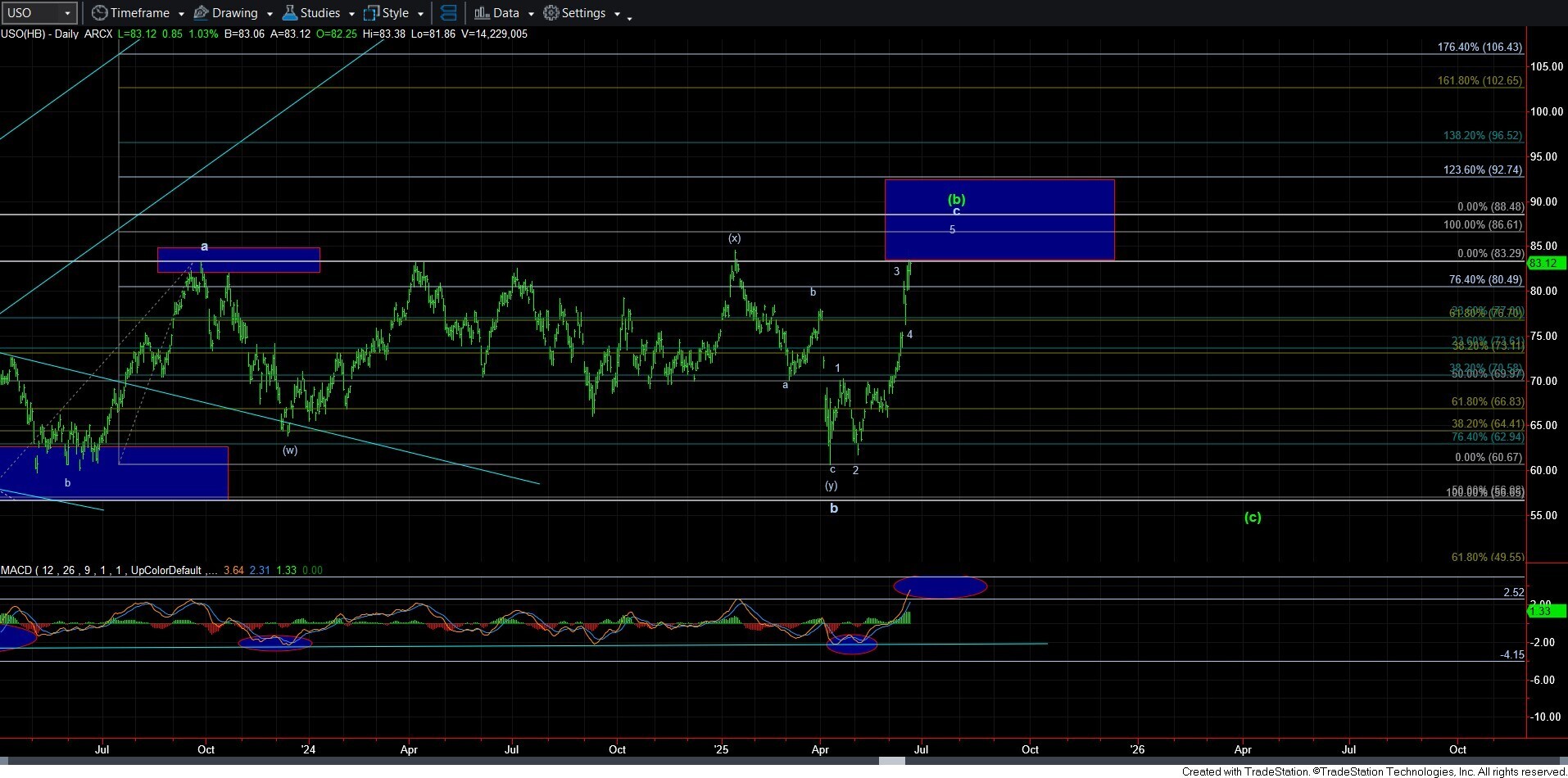 As we now know, USO bottomed a little over the 60 level, and then rallied strongly to the 84 region. In truth, there was a spike in the overnight session to the comparable 88 region at the end of June which was not seen during the market hours tracked in the USO chart, which then reversed before the market opened the next day. And, the top occurred when the war with Iran and Israel concluded. Did I know that this war was going to occur when I published this chart analysis early in 2025? Did I know the war was going to end when the USO would reach the 84-88 region?