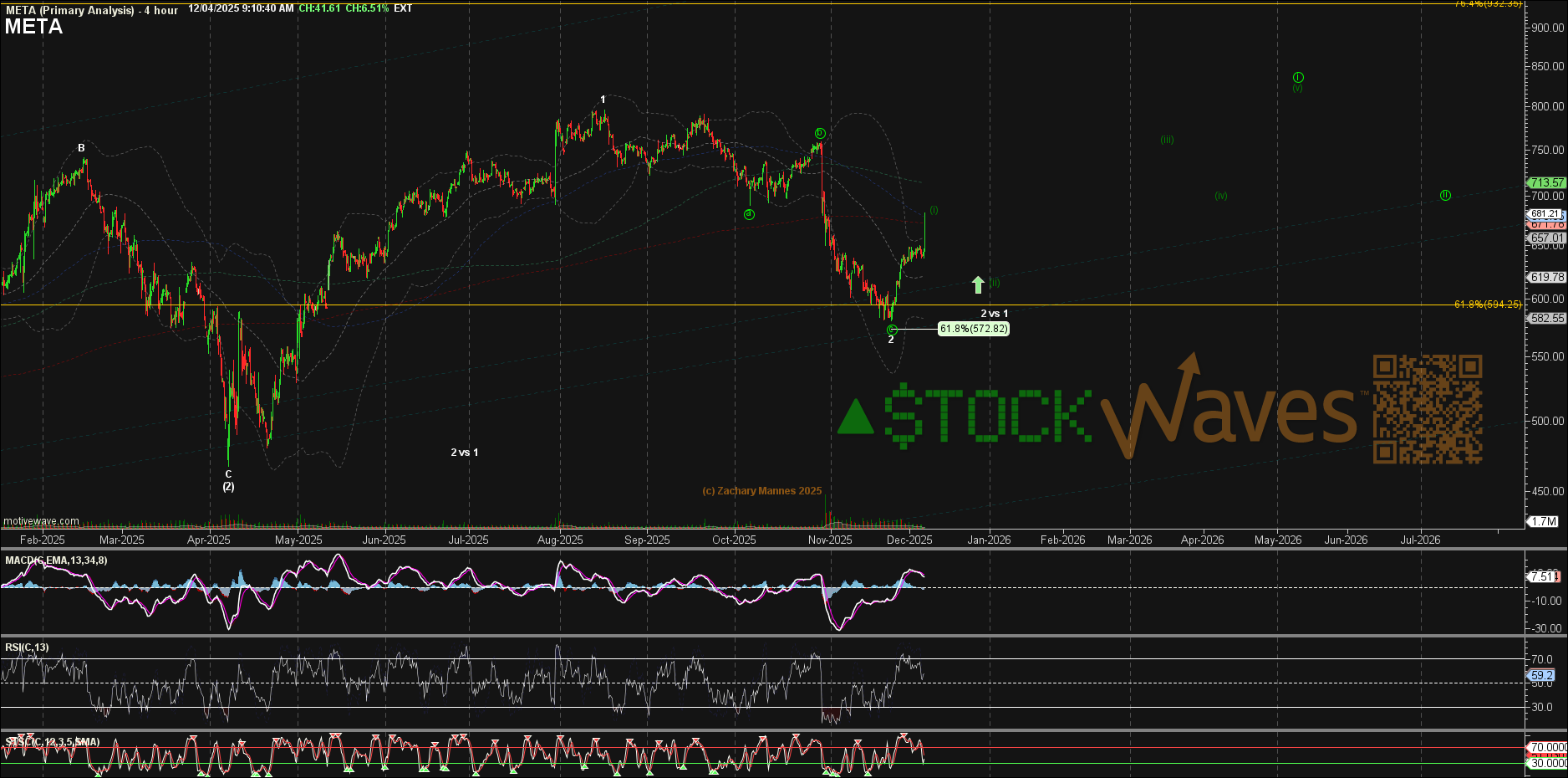 We must keep in mind that markets are not refereed by accountants — they are driven by crowds. And if price can defend the $575 support, the nested structure argues that the crowd has already begun to cast its vote. From there, META wouldn’t just retest $800 — it would be stepping onto the runway of a potential third-wave surge.