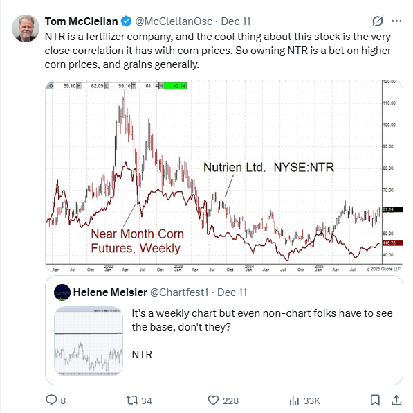 Nutrien has been on an overlapping grinding run up since it bottomed in September 2024 (in CAD dollars), up approximately 40% over that time period.