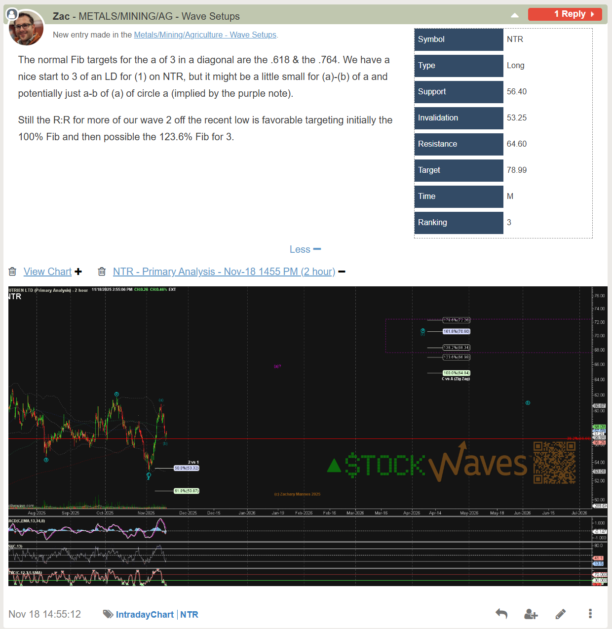 The Stock Waves and Metals, Miners and Agriculture services at Elliotto Wave Trader (elliottwavetrader.net) have tracked Nutrien for many years following it into the bottom in Q3 2024 depending on the chart you track CAD or USD.