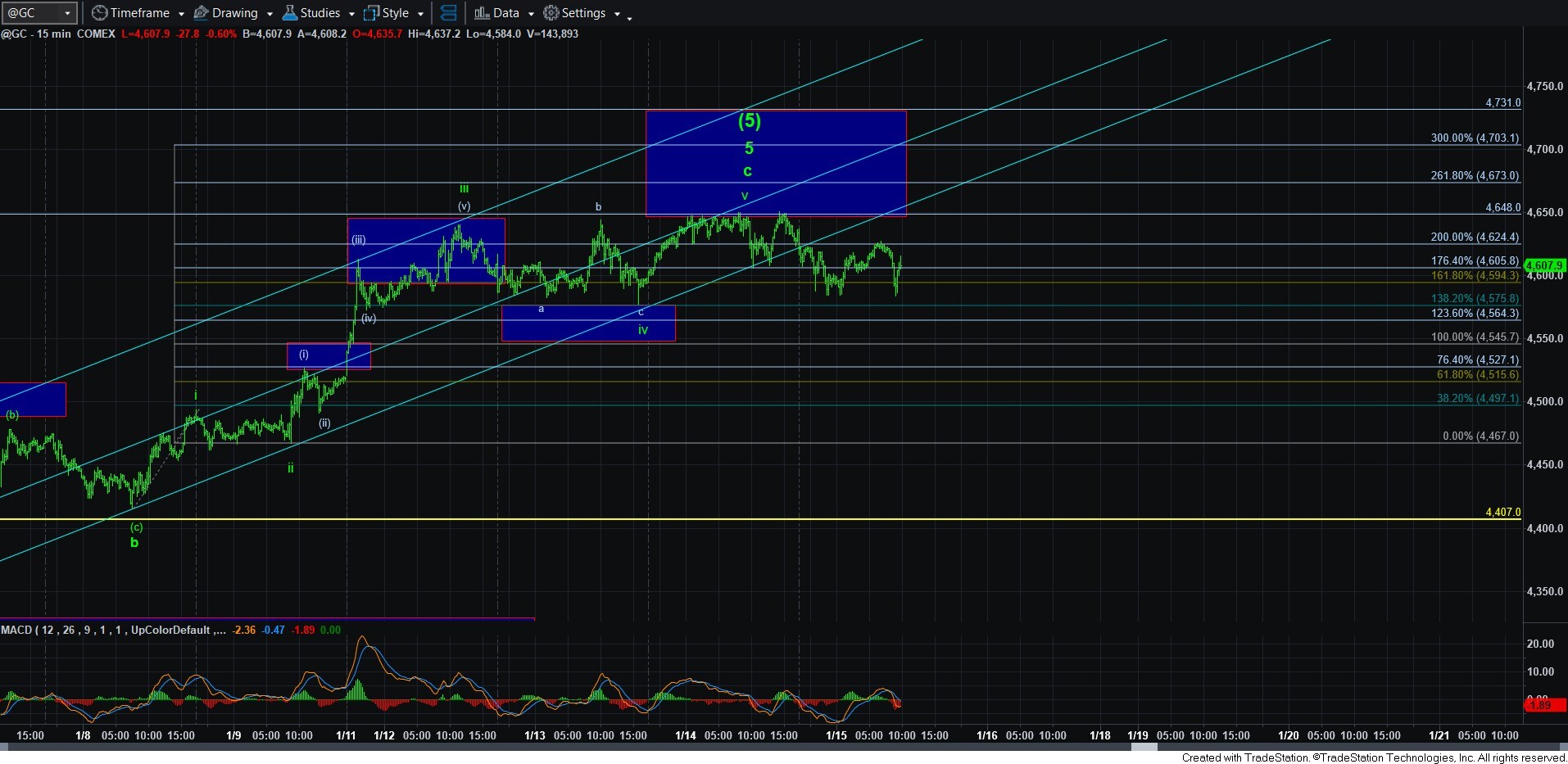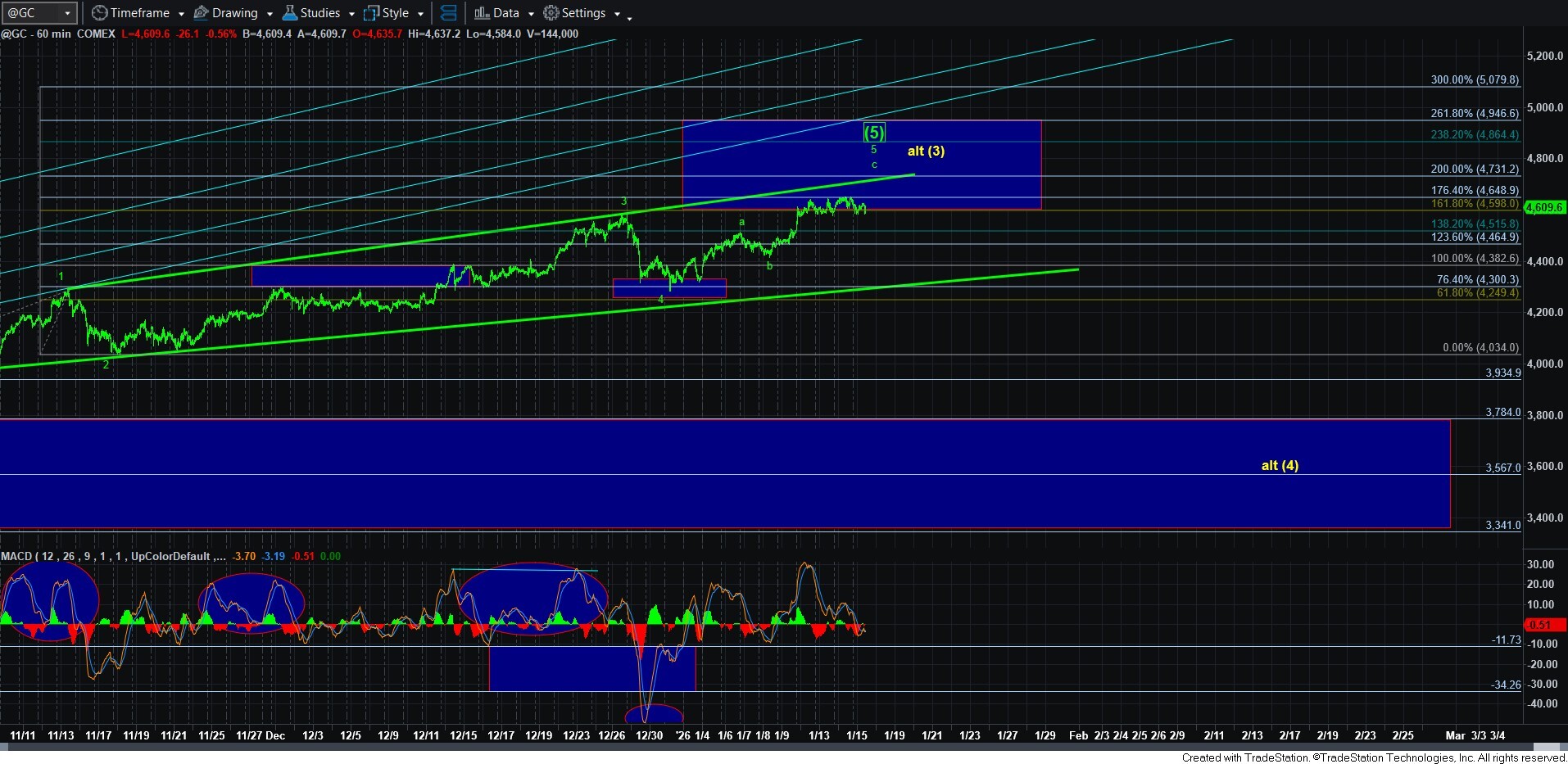 In gold, we now have enough waves to consider this rally as having topped. Yet, we have not seen the usual hallmark of an ending diagonal completion, wherein it spikes through the trend channel followed by a stronger reversal back into it to start its decline. So, until we actually see a sustained break down below 4545, I still have to leave that door open.