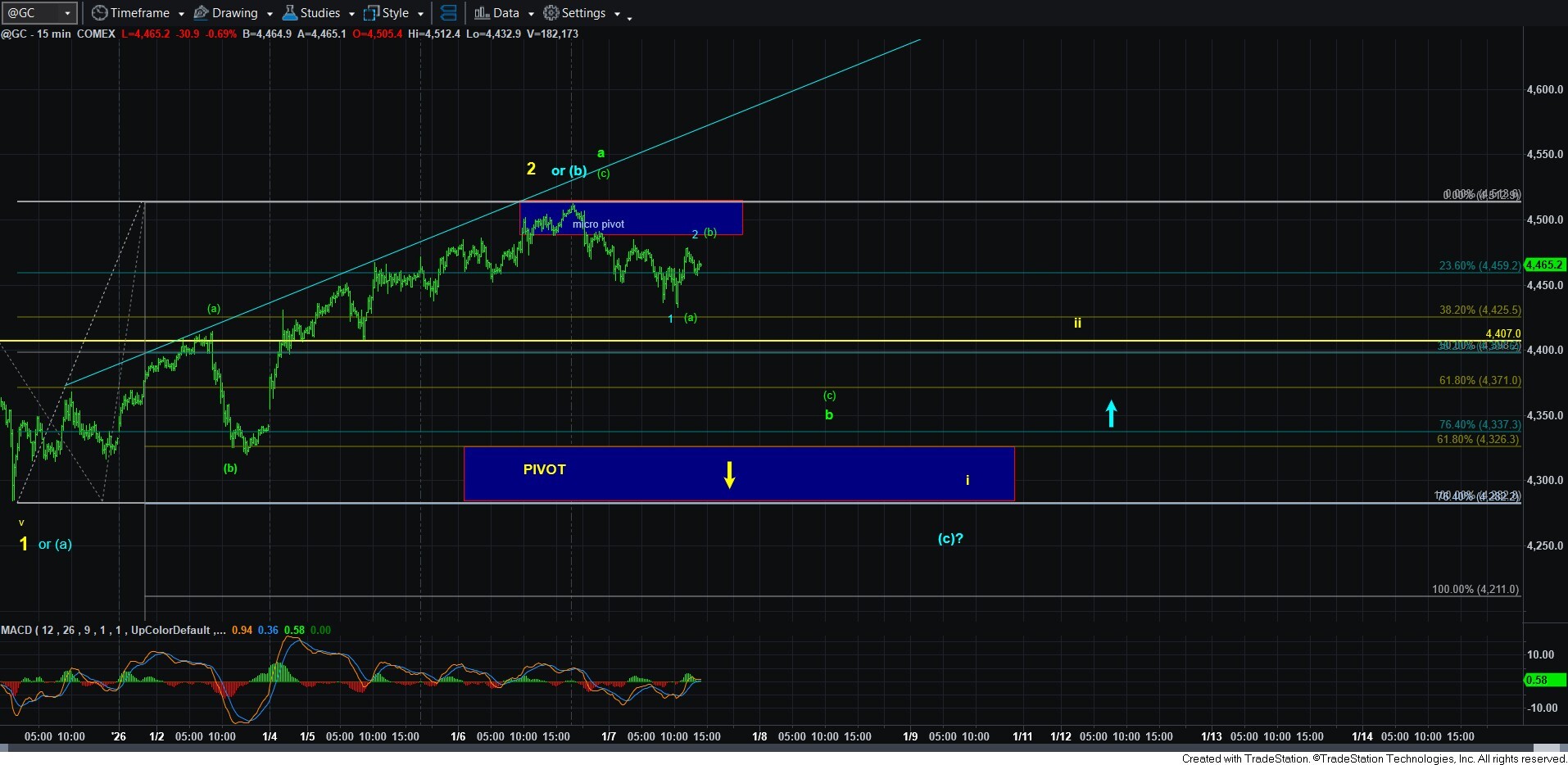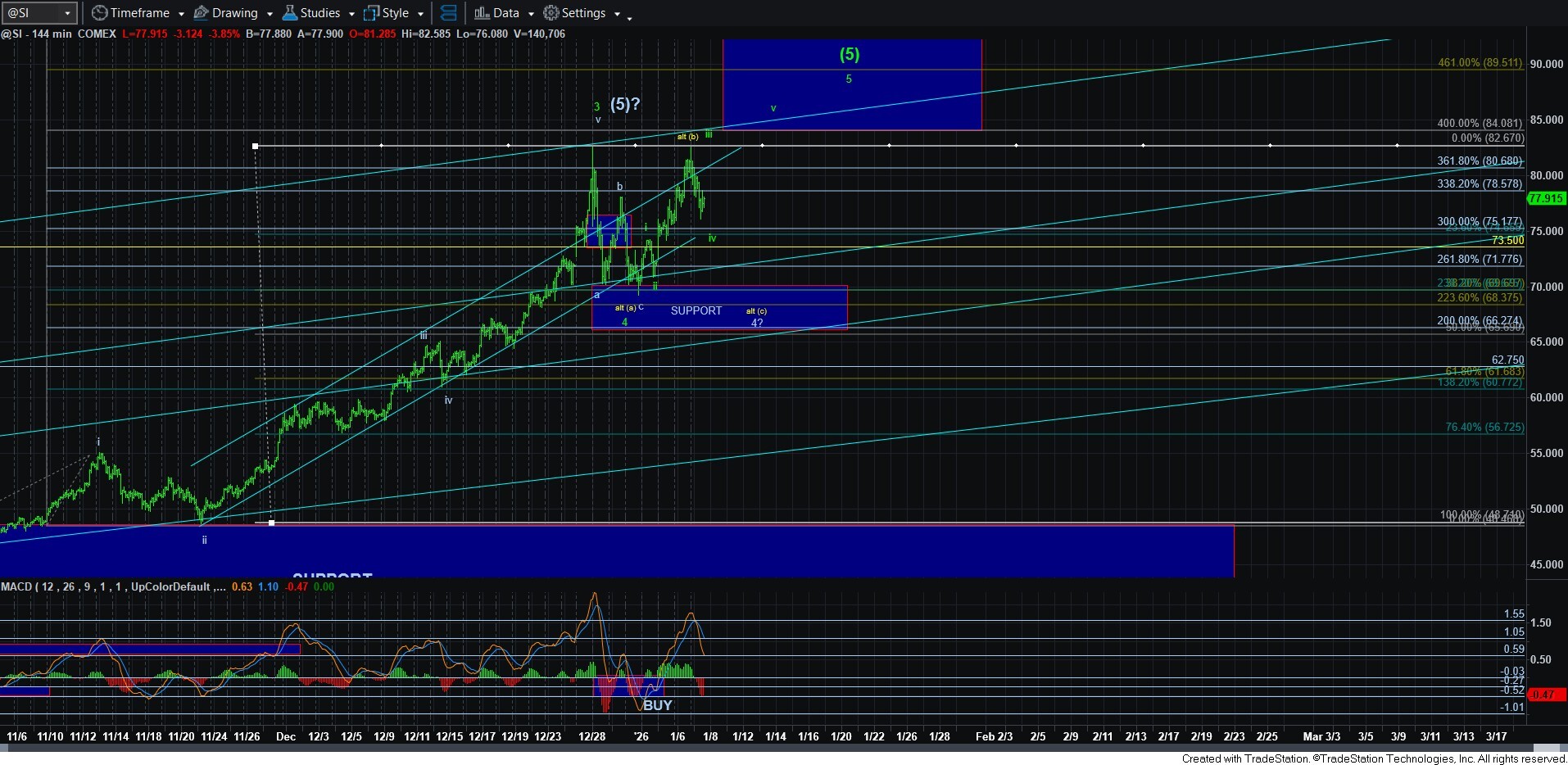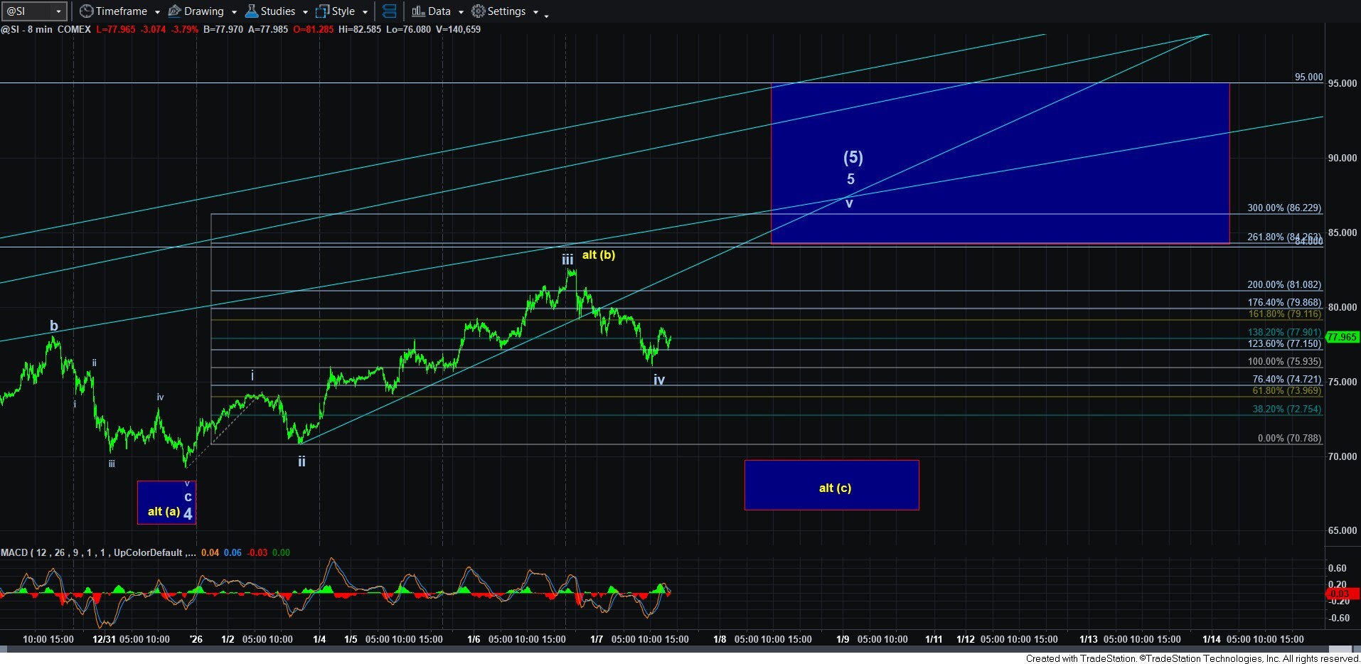 So, as with silver, I do not have any strong signals that suggest this b-wave has completed.